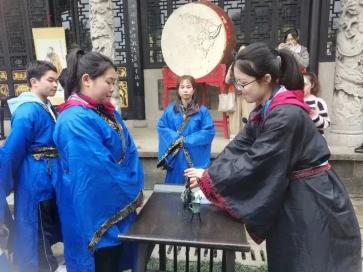 換上漢服,參加書院傳統(tǒng)釋菜禮,感受宋代傳統(tǒng)國學禮儀文化蘊含的德育價值,在中國傳統(tǒng)禮儀中進行尊師的德育熏陶,了解中華優(yōu)秀傳統(tǒng)文化、提升文化底蘊。