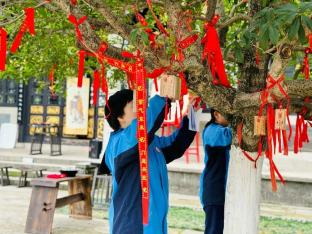 學生們在此書香氛圍烘托之下,自發(fā)在桃川書院寫下美好祝愿,懸掛祈福牌,祈求學業(yè)有成,金榜題名。