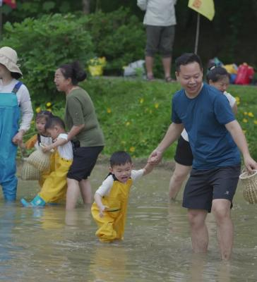 ★一通熱鬧快活地忙碌之后,田地里的水逐漸渾濁,大家的捕捉技能也迅速飆升,或眼疾手快,或手腳并用,或團結(jié)合作圍追堵截。