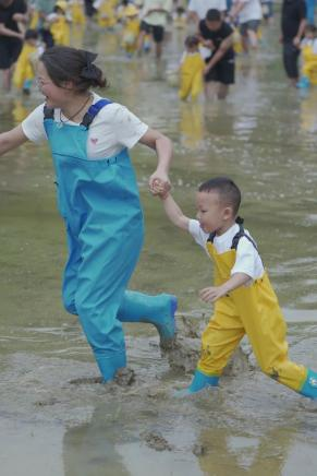 但是絲毫不影響孩子們對插秧的好奇,對捕魚捉鴨的熱情,