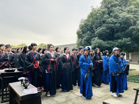 課程實(shí)施:通過(guò)參觀天寧書(shū)院了解中國(guó)書(shū)院歷史,以互動(dòng)實(shí)踐的方式深度體驗(yàn)書(shū)院竹簡(jiǎn)編書(shū)、藏書(shū)、講學(xué)、祭祀的四大功能。參加書(shū)院傳統(tǒng)釋菜禮,感受宋代傳統(tǒng)國(guó)學(xué)禮儀文化蘊(yùn)含的德育價(jià)值,在中國(guó)傳統(tǒng)禮儀中進(jìn)行尊師的德育熏陶;了解中華優(yōu)秀傳統(tǒng)文化、提升文化底蘊(yùn)。