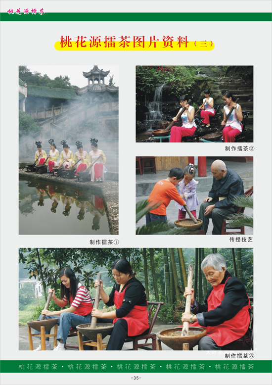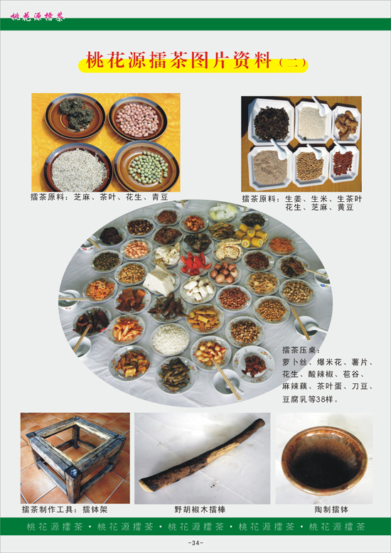 桃花源擂茶歷史悠久,源遠(yuǎn)流長。東漢(建武)25年(公元49年),伏波將軍馬援奉漢武帝之命征五溪“蠻”,率兵溯沅水而上。所部路過烏頭村(今天的桃花源)。因水土不服,感染瘴氣風(fēng)寒,病倒無數(shù)。疑為“瘟疫淫侵。”《后漢書?馬援列傳》載:“會(huì)署甚,士卒多疫死,援亦中病,遂困?!碑?dāng)?shù)匾焕蠇D獻(xiàn)出祖?zhèn)髅胤健叭鷾保从蒙住⑸?、生茶葉在擂缽中搗碎,開水沖兌湯服),以治其病,馬援命全軍飲用后,病疫頓愈,士氣大振。從此“三生湯”(即桃花源擂茶)能治百病便相傳至今,在當(dāng)?shù)匮爻闪?xí)俗。